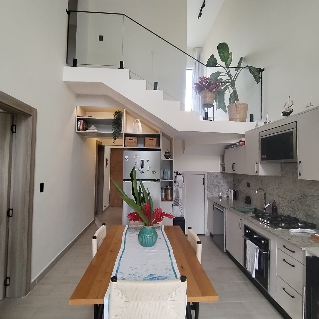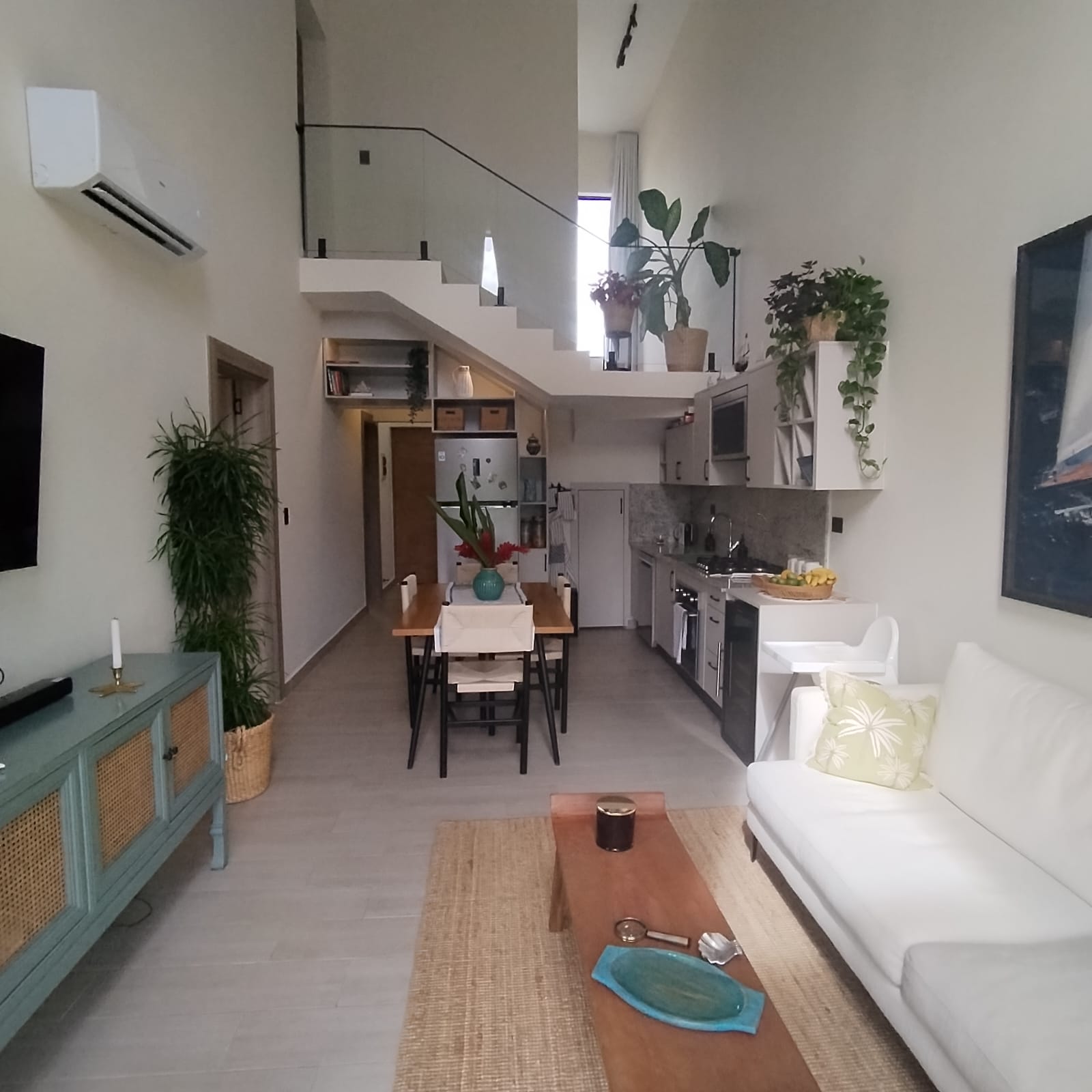 2 parqueos, terraza, patio, compmetamente amueblada con lava platos y nevera vi帽era integrada en la cocina.Area de Yoga
